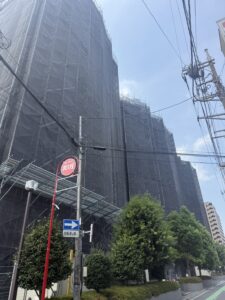 施工面積15,699㎡、全3棟にわたるマンションの足場組立・解体工事を実施いたしました。